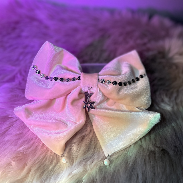 ☃️ Ce nœud beige est orné d’une chaîne aux détails ronds, rappelant la légèreté des flocons qui tourbillonnent dans l’air hivernal. Il est accompagné de perles blanches nacrées et givrées, évoquant la neige qui tombe doucement, et d’un flocon délicat placé en son centre pour apporter une touche féerique. ☃️