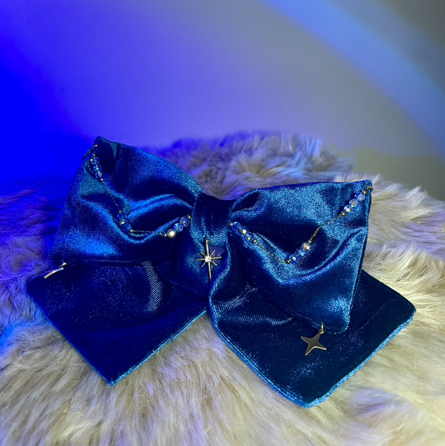 Un petit bijou de cheveux délicat qui capture la magie des nuits étoilées. Orné de perles bleues scintillantes et de petites étoiles dorés, il apporte une touche lumineuse et féerique à votre tenue. 💫💙