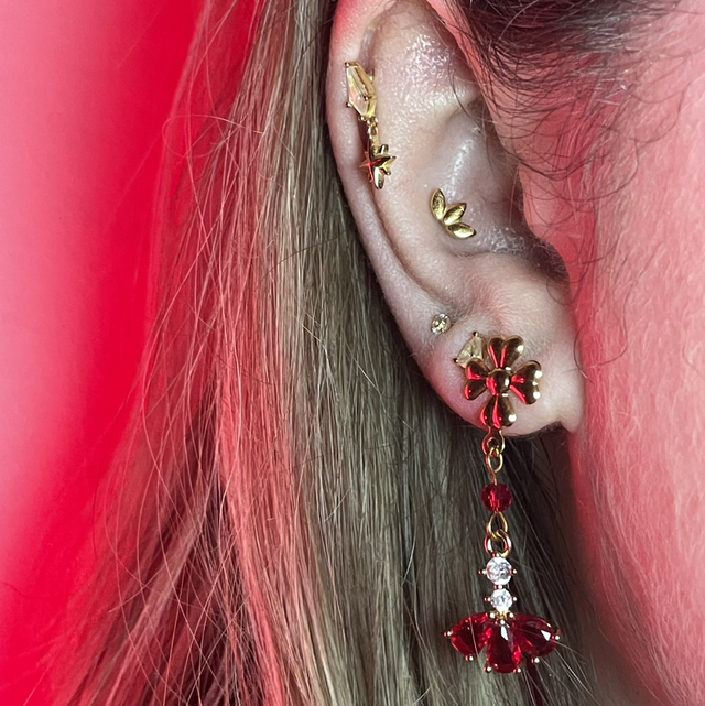 Ces boucles d’oreilles délicates associent un pendentif pétale rouge à une perle rouge scintillante, évoquant la beauté chaleureuse de la fleur de Noël.